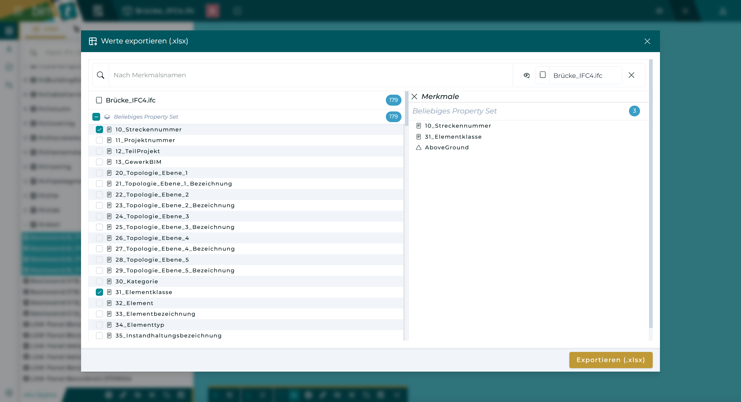 einzelne Elemente innerhalb der IFC-Klasse exportieren.