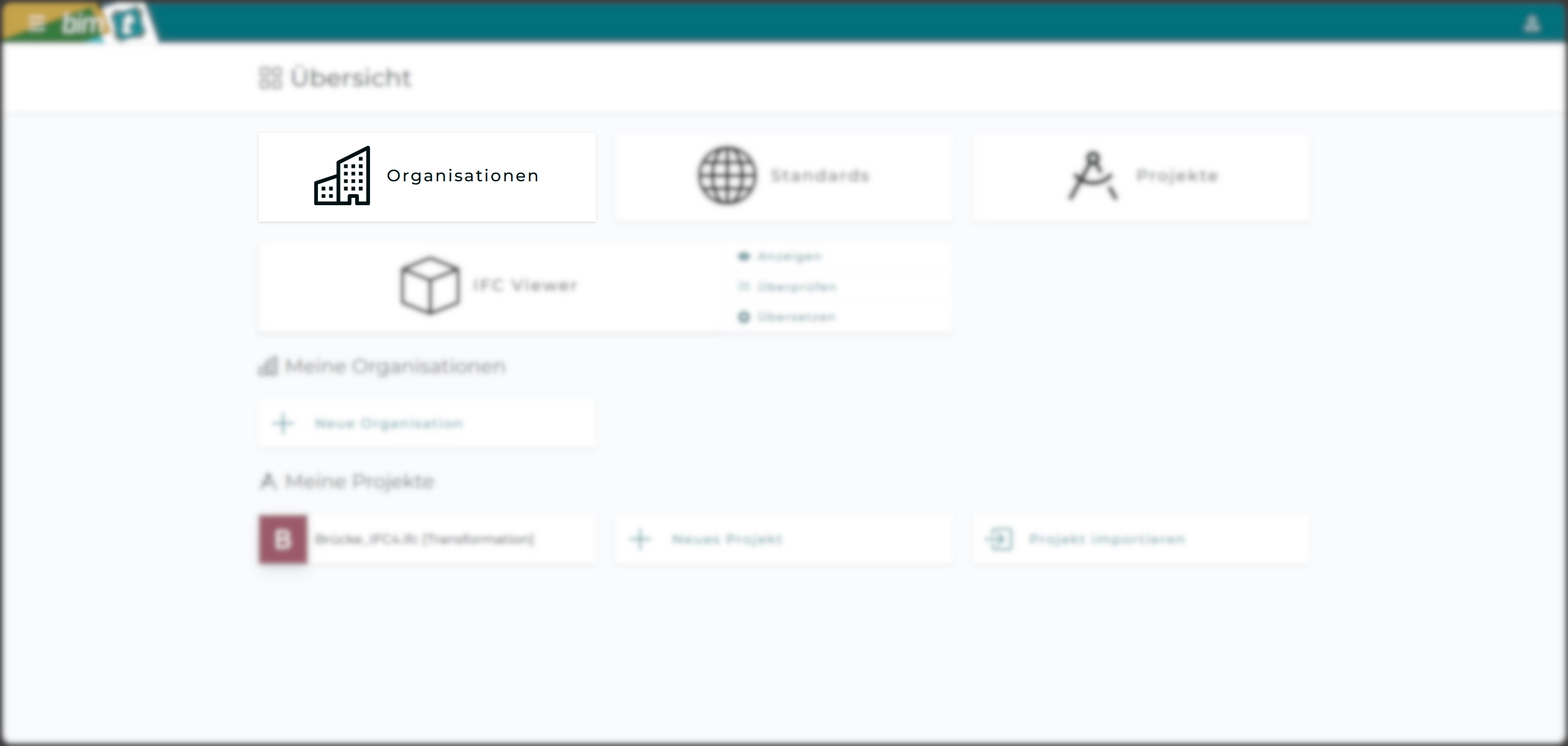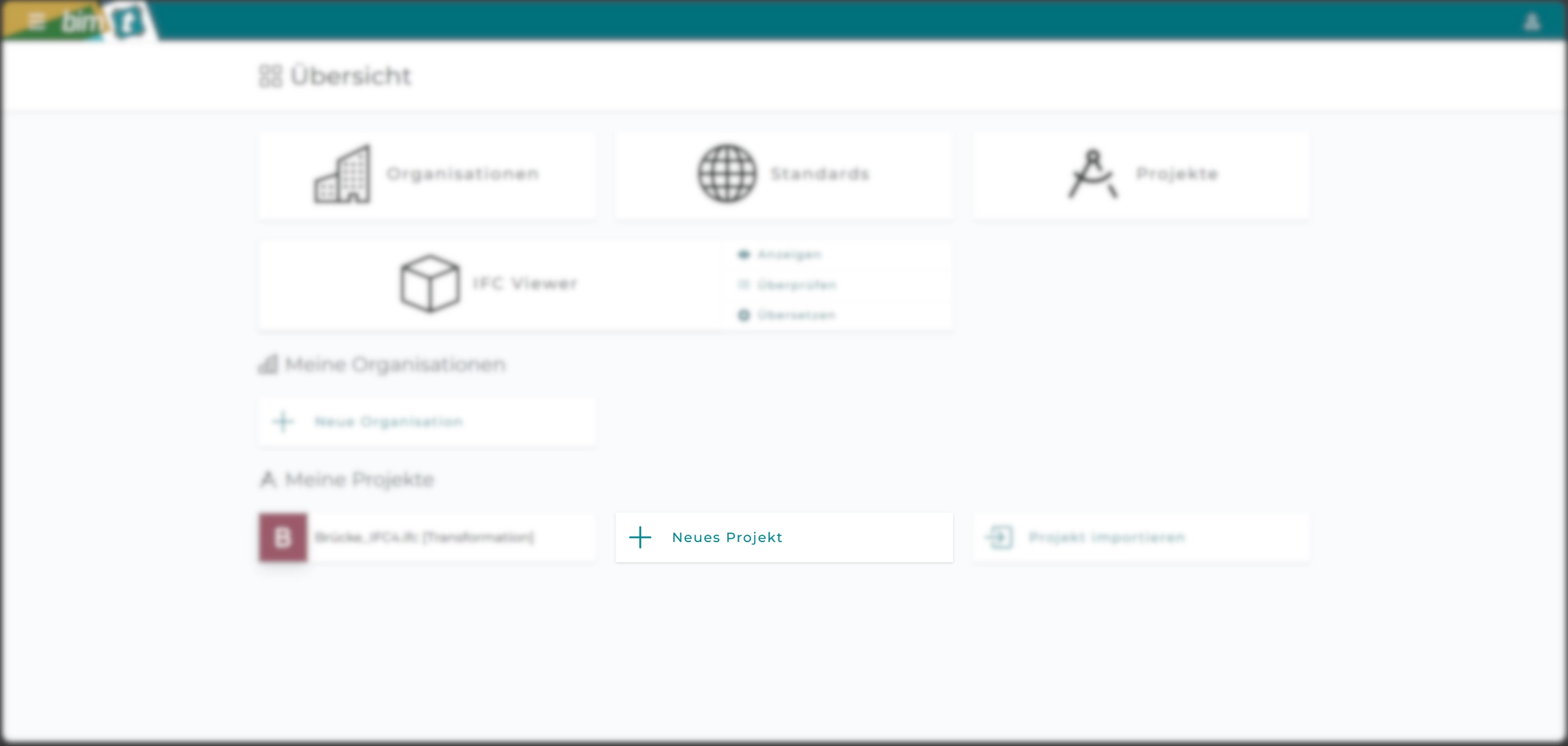 Organisation in Projekte zu importieren, um IFC-Modelle validieren