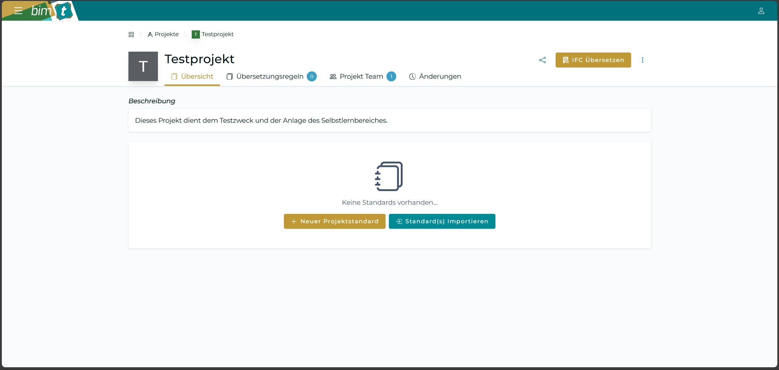 Ein Projekt bietet den Rahmen für das Übersetzen von IFC Modellen. Ein Projekt kann - muss aber nicht - einem wirklichen Bauvorhaben entsprechen, kann aber auch ein Projekt zum Abgleich zweier Firmenstandards sein, damit ist es auch möglich, dass dasselbe Projekt in mehreren Bauvorhaben Verwendung findet, oder umgekehrt, dass in einem Bauvorhaben mehrere Projekte zur Anwendung kommen, wenn beispielsweise je Fachbereich ein Projekt erstellt wird.