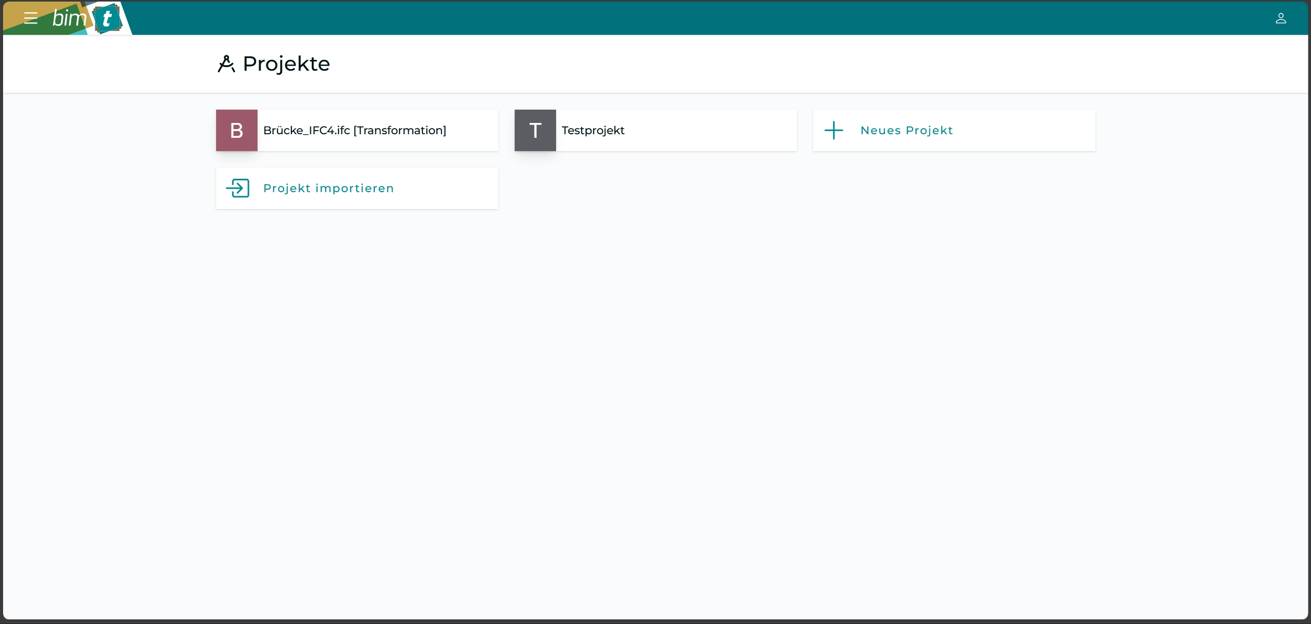 Hier werden Ihnen alle vorhandenen Projekte angezeigt. Klicken Sie auf “Neues Projekt” um ein Projekt zu erstellen.